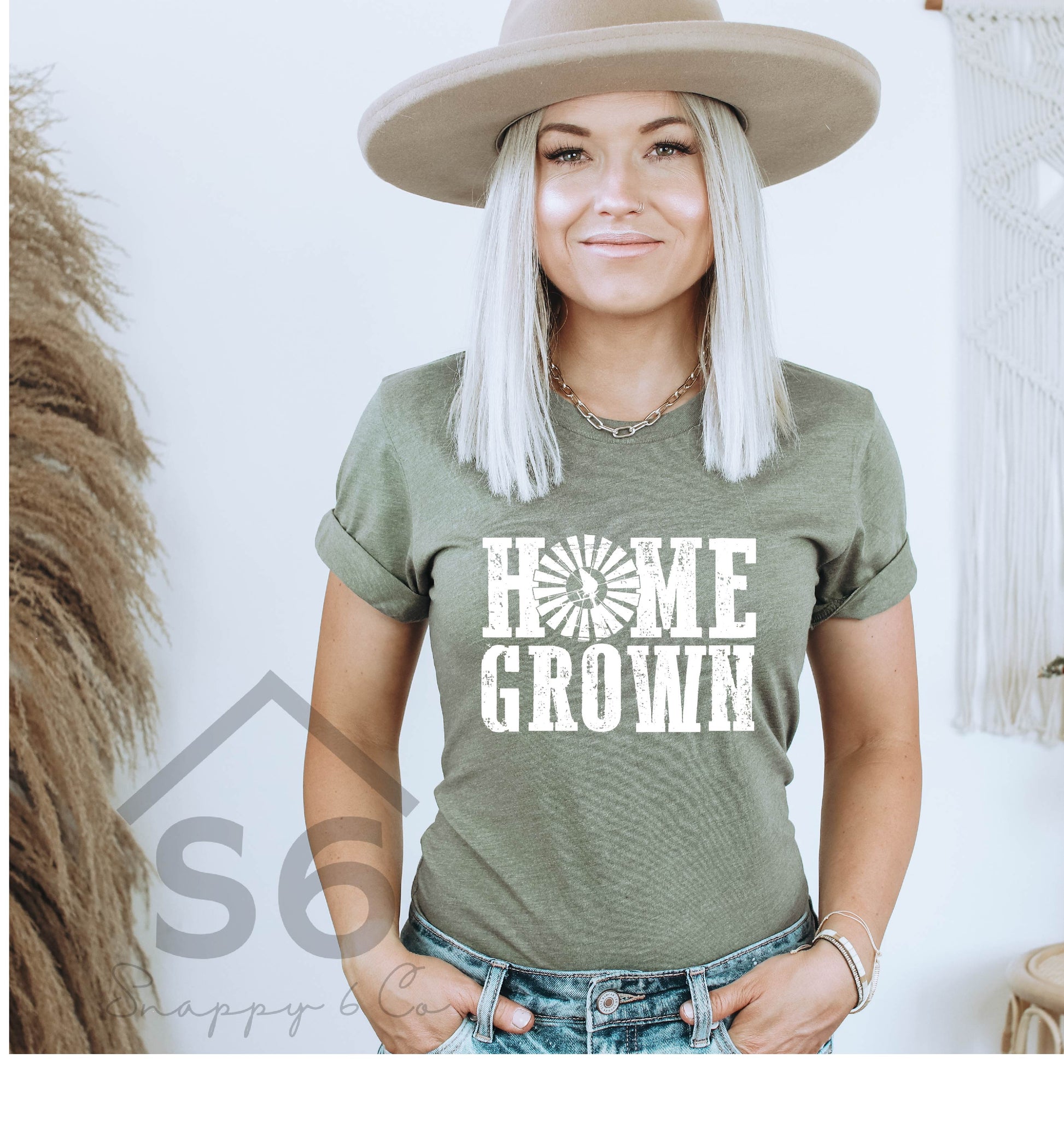 Experience ultimate comfort and style in our Home Grown T-Shirt. Made with high quality material, this olive green shirt is soft to the touch and perfect for everyday wear. Show off your pride in locally grown products and add this versatile and comfortable piece to your wardrobe today!